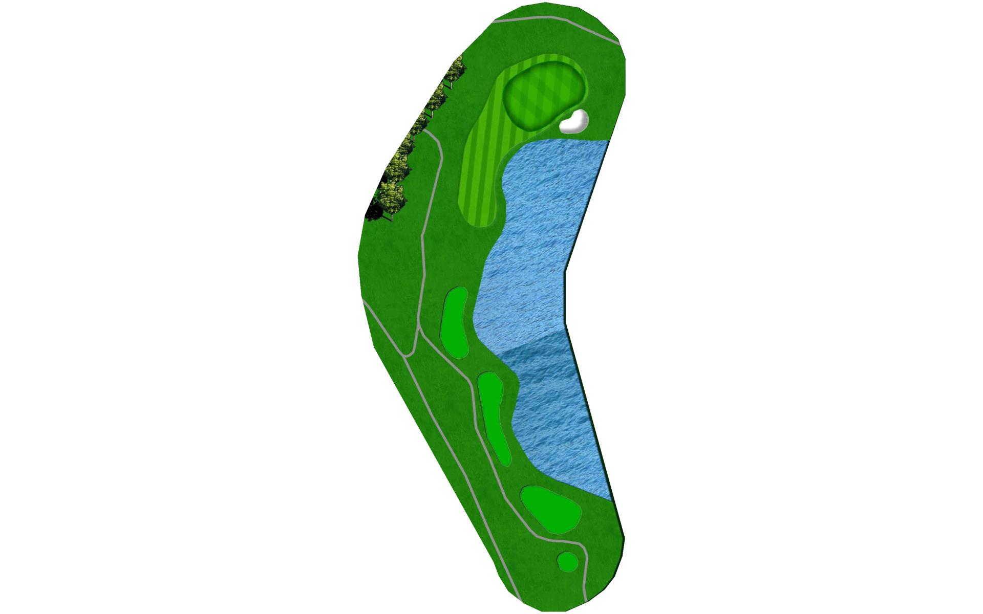 A fairly simple par 3, the sixth features a green with a spine down the middle. Players who find themselves on the wrong side may find two-putting difficult.