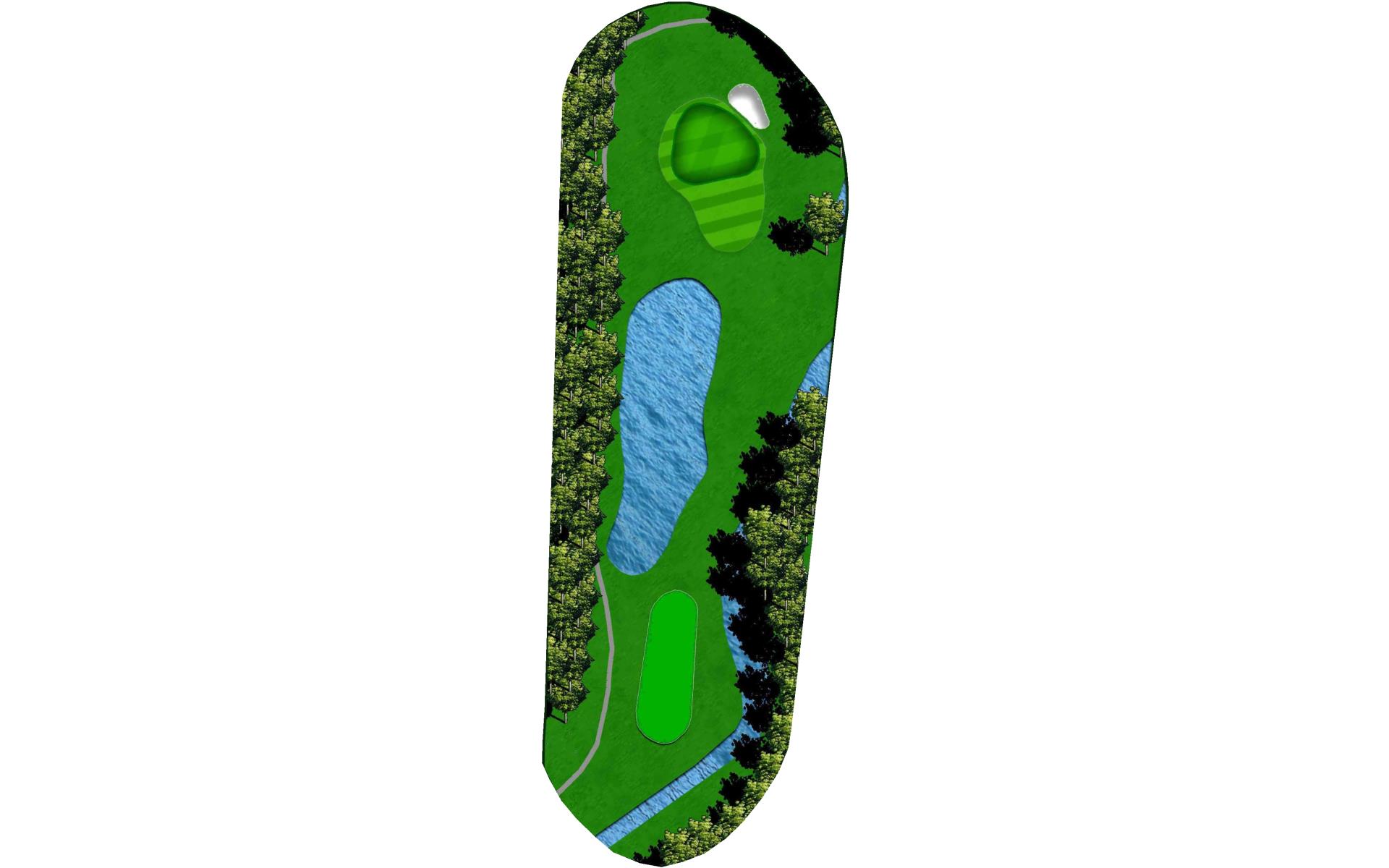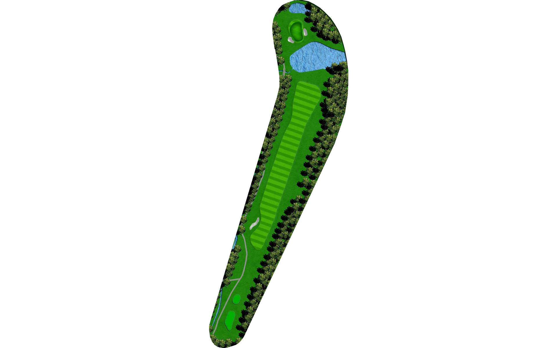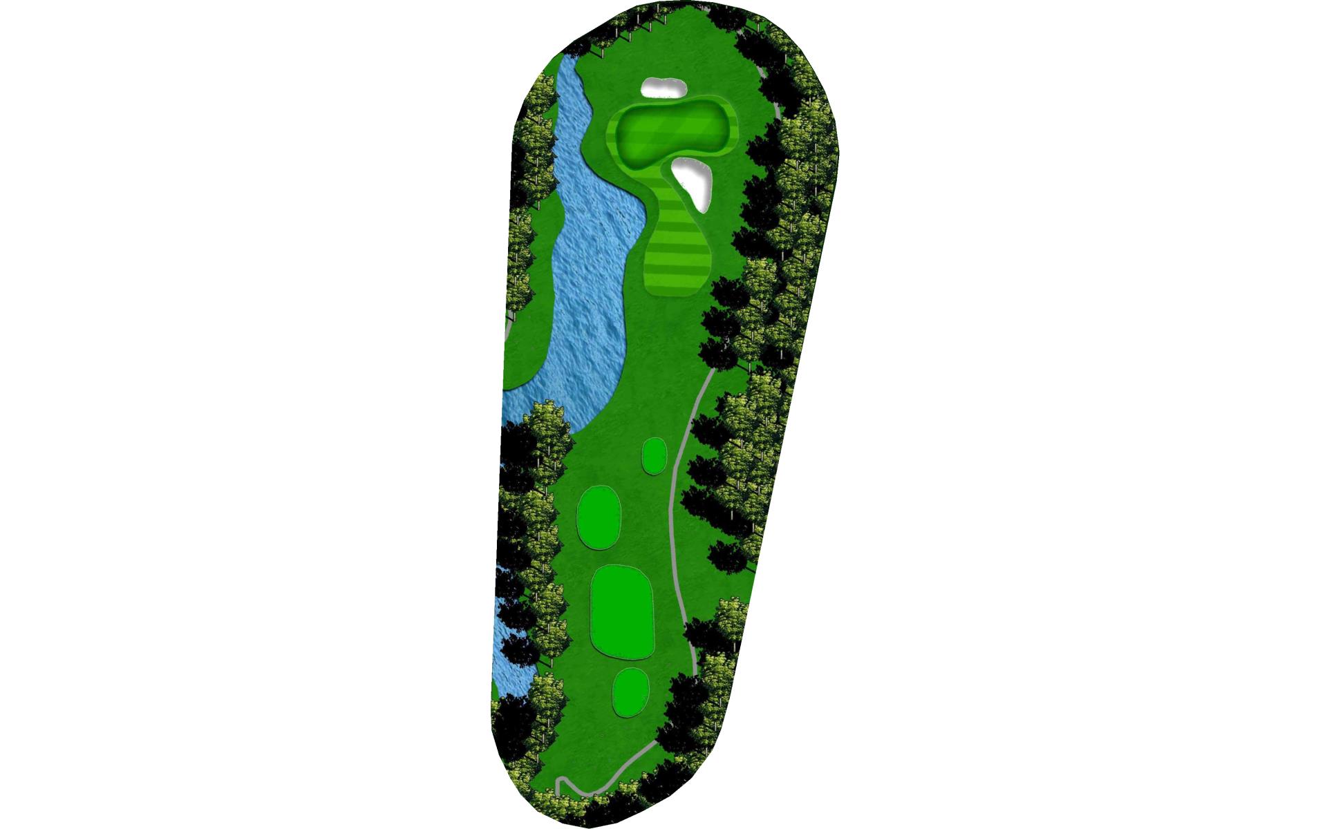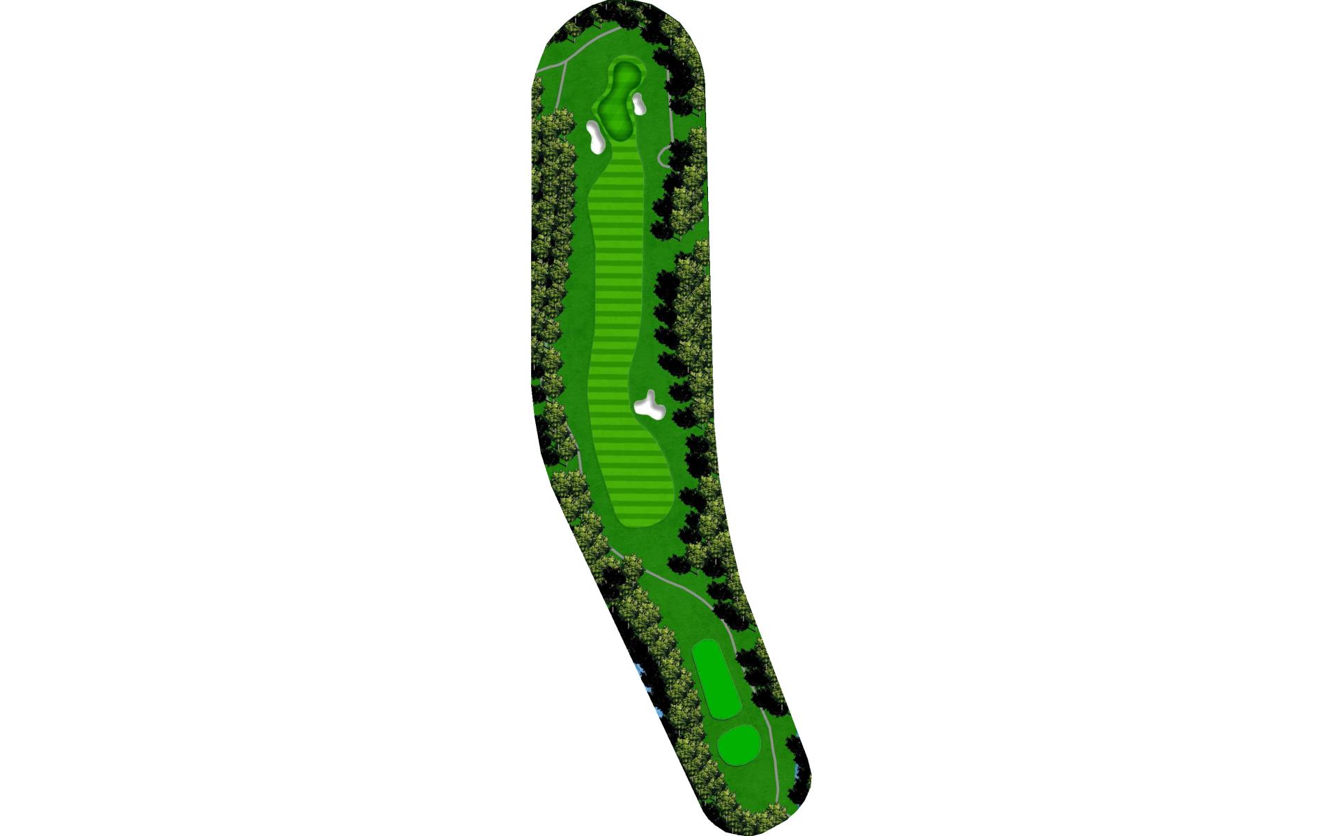 | An accurate drive is most important. Don't cut too much off the dogleg or get blocked by tall trees. Club selection is vital on your second shot. |