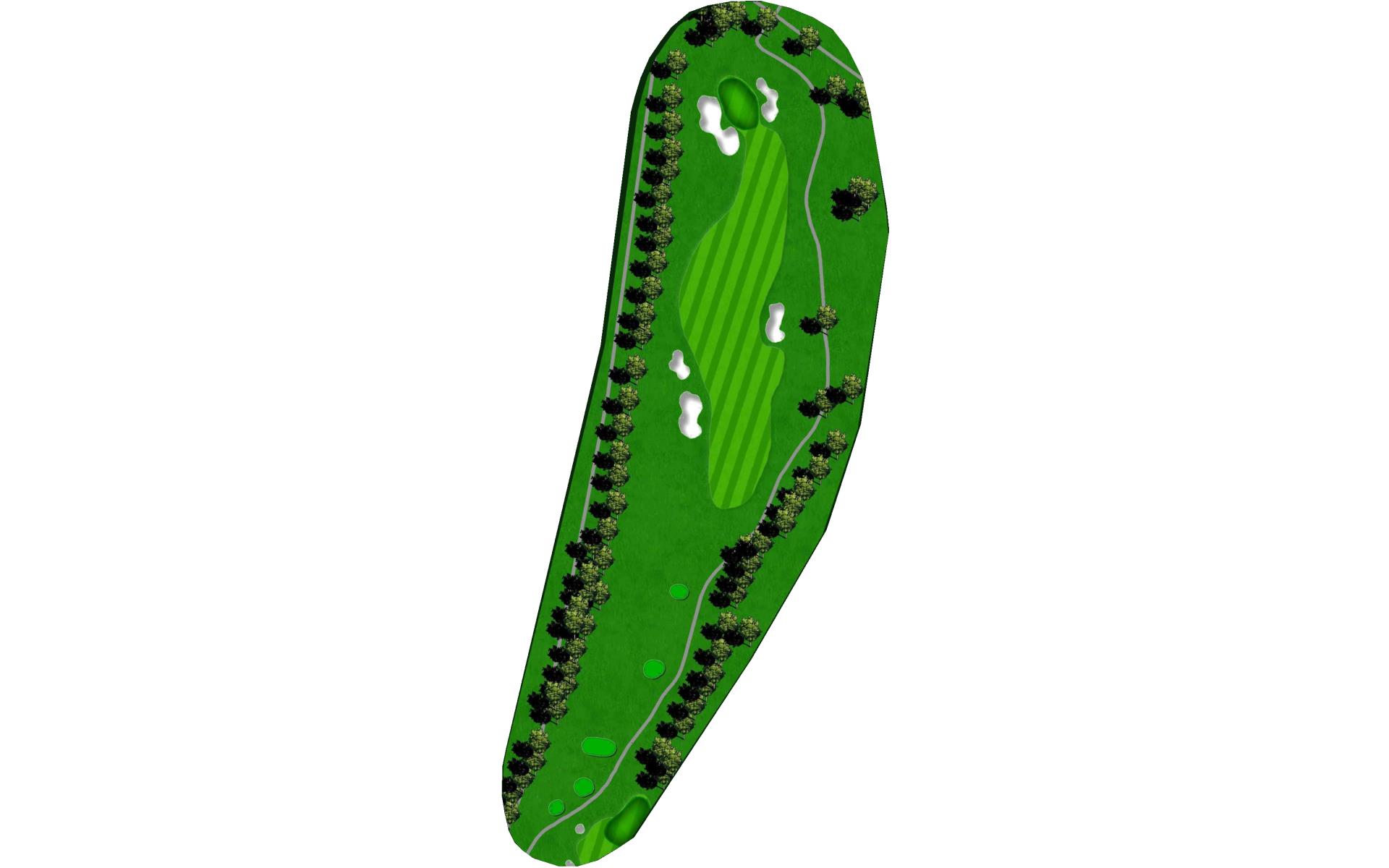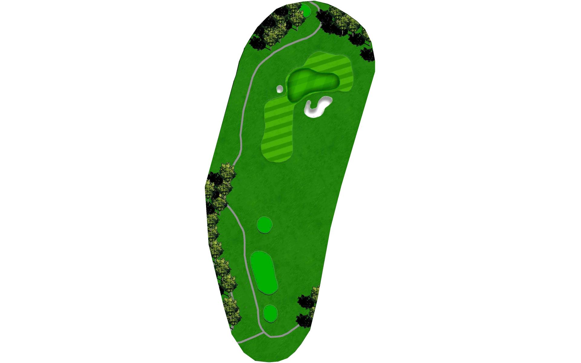 | This hole is a slightly uphill par 3 to a long, narrow green that breaks down and away from left-to-right. Sand guards the putting surface in front. |