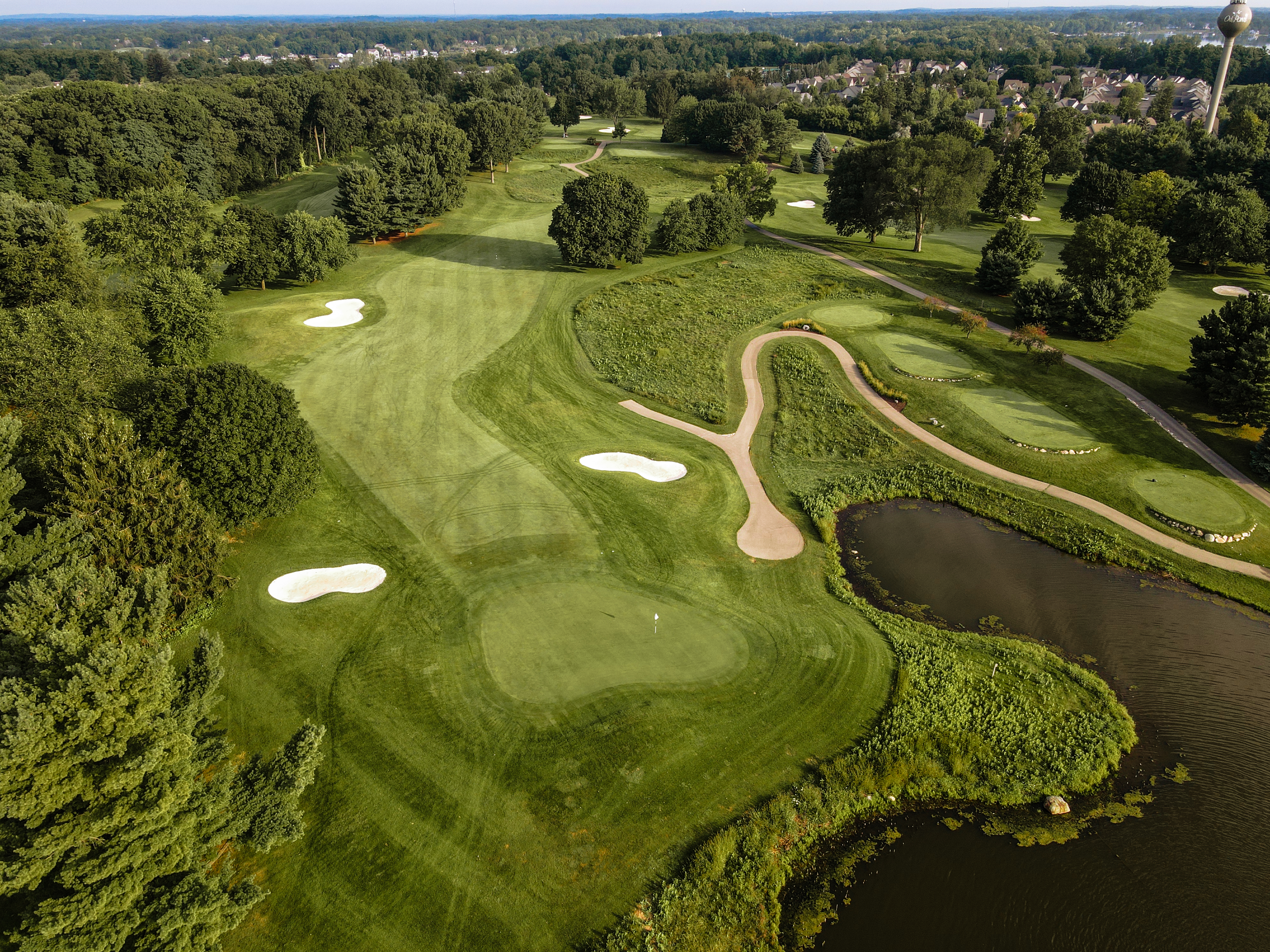 Drive for show on this beautiful par 4. The approach shot requires a little extra attention here.