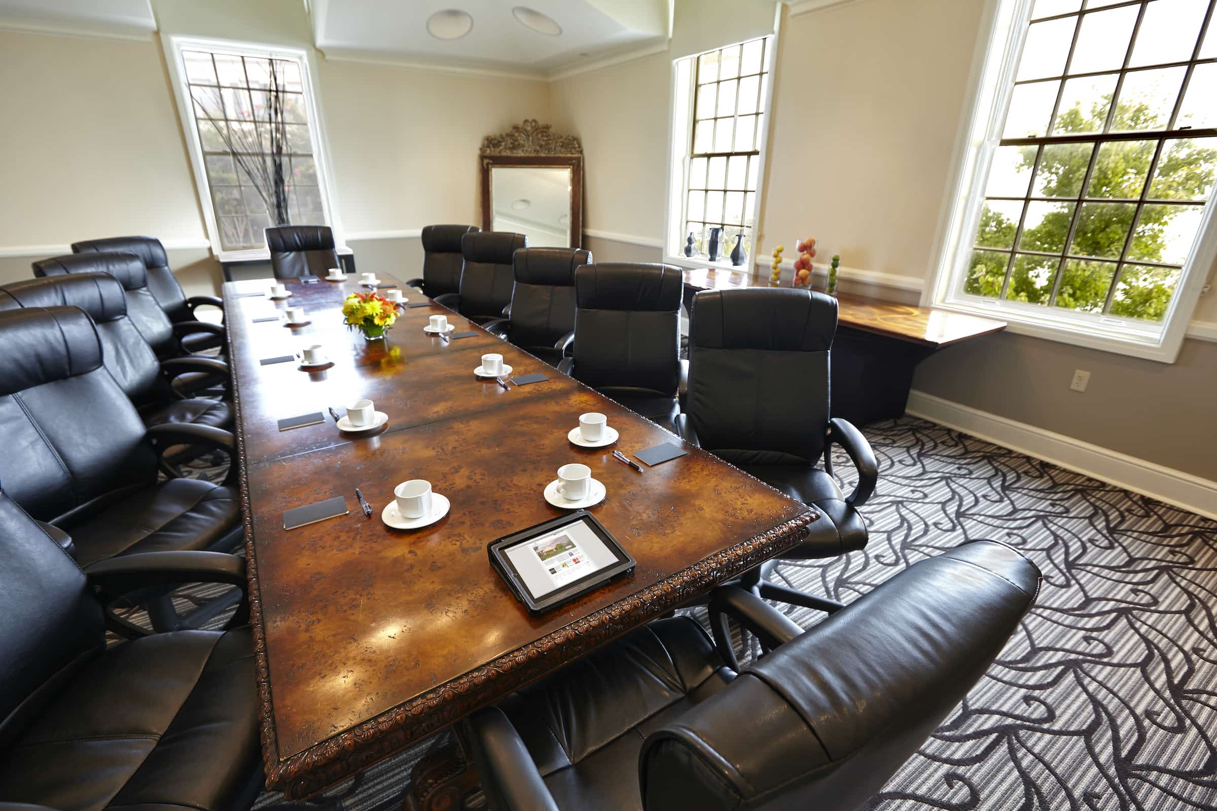 Our most intimate room with a permanent board table for up to 12 people. The Board Room is perfect for small meetings and private dinners.