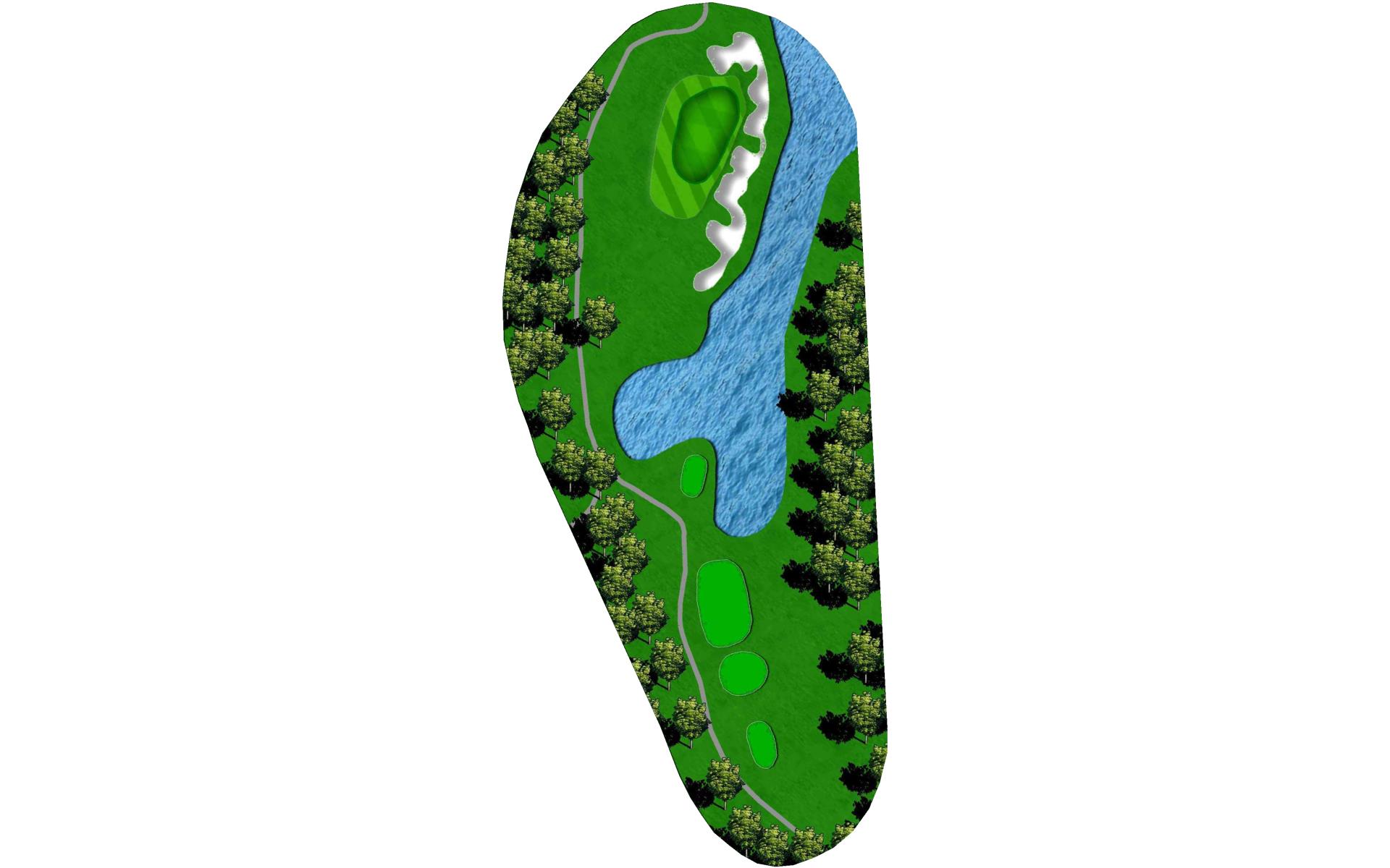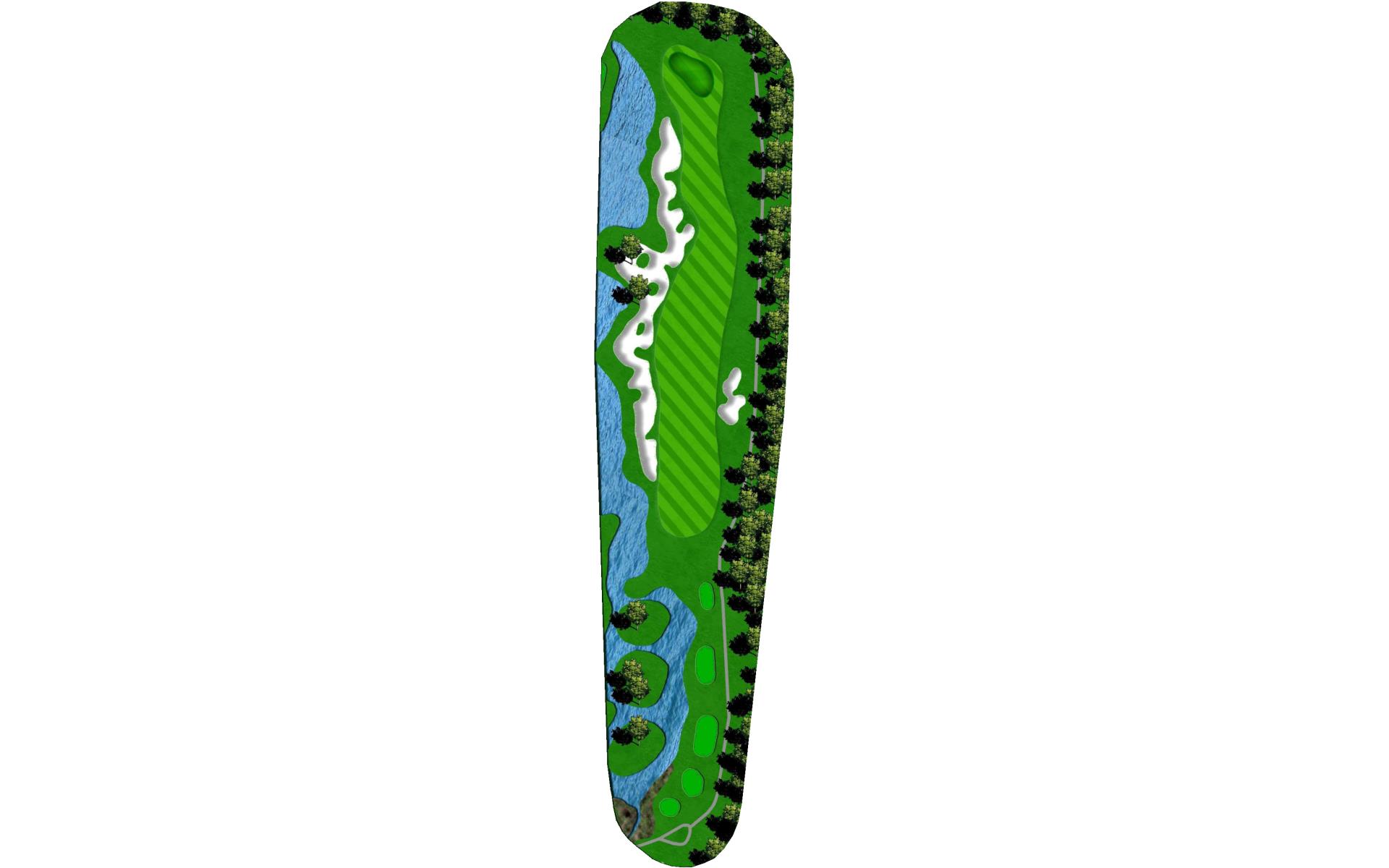 A short par four with an expansive beach bunker guarding the right lagoon. This hole rewards the bold player, while Old Man Par fears the p…