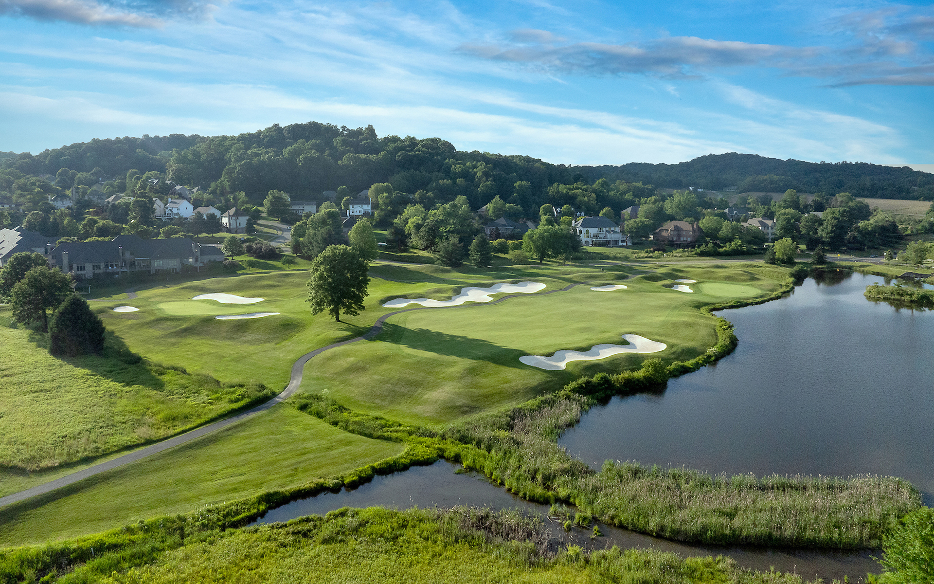 The Orchard Course, an unforgettable experience designed by Arnold Palmer, surrounds the Treesdale Farms Lake with beautiful views and challenging landscapes before traversing to its summit, offering players outstanding views of the area.